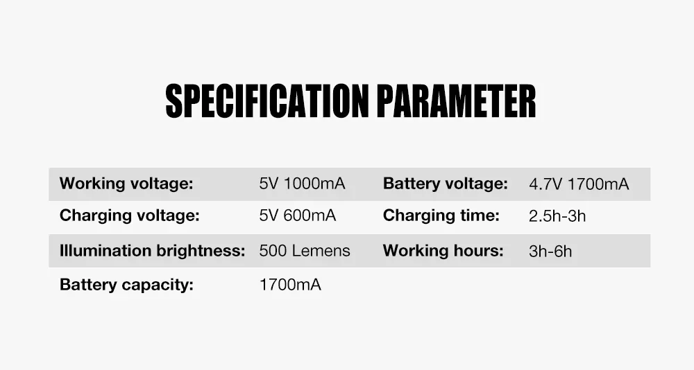 Charging voltage: 5V/500mA