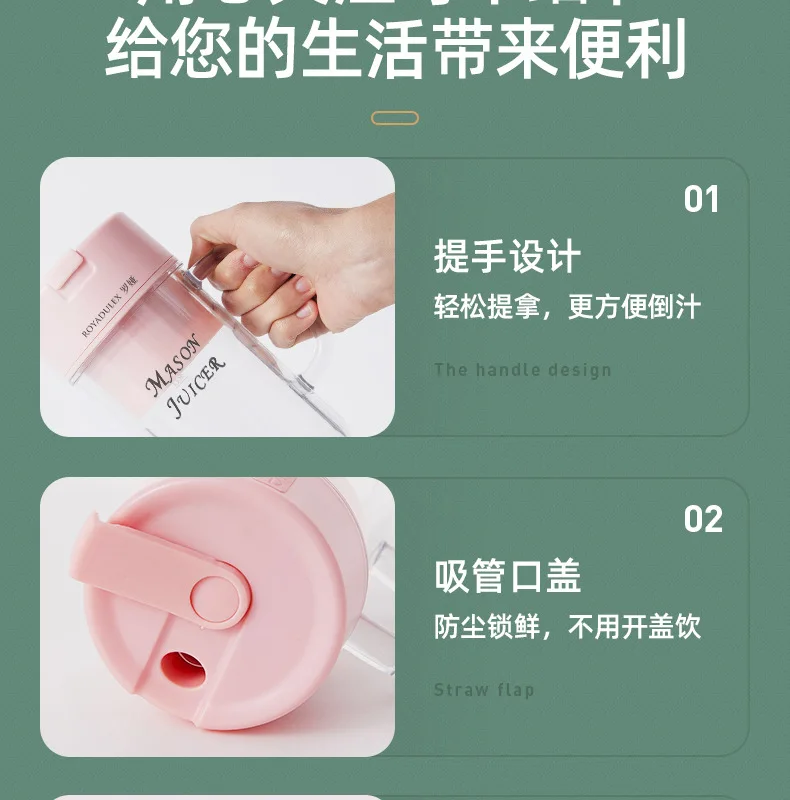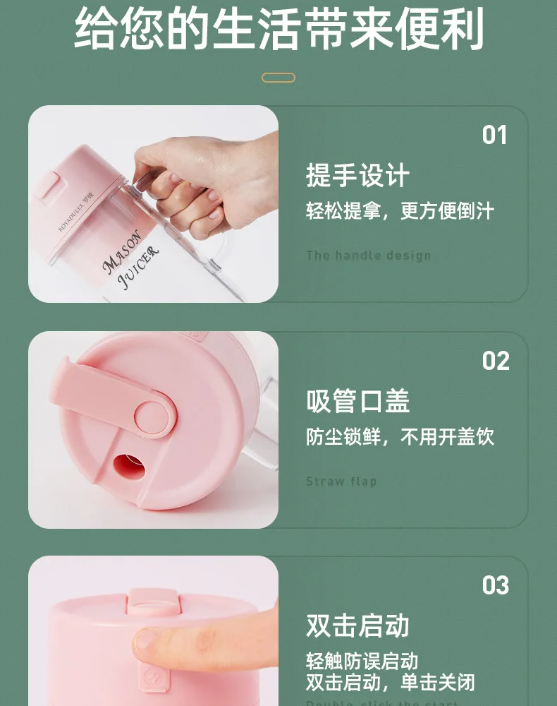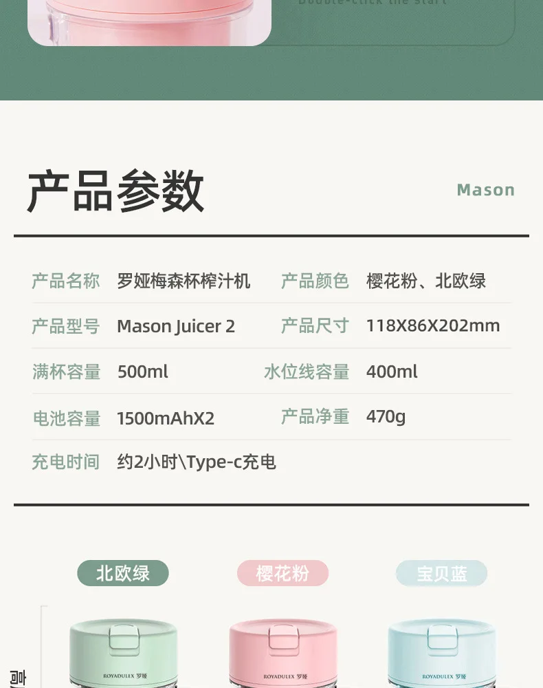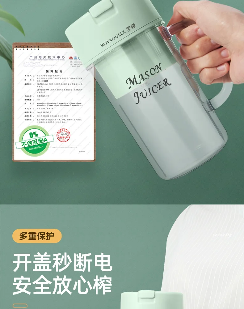 New Royalty Line Roya Mason Cup Juicer Electric Portable Stirring Crushed Smoothies Juicer New Product