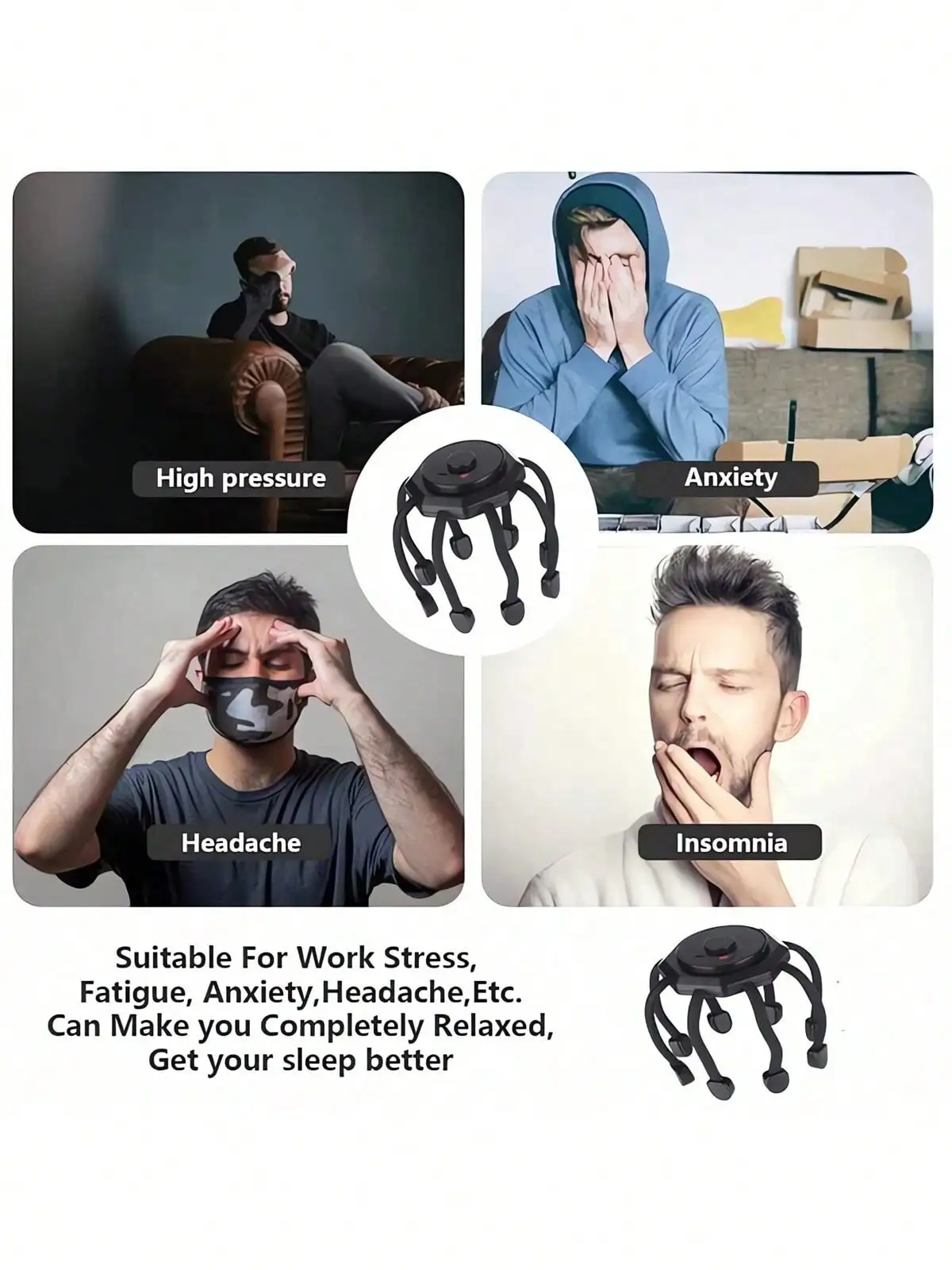Ultra Scalp Massager, Head Massager Stress Release Massager with 8-Frequency Vibrating Contacts, 3 Modes 360 Degree Portable Ult